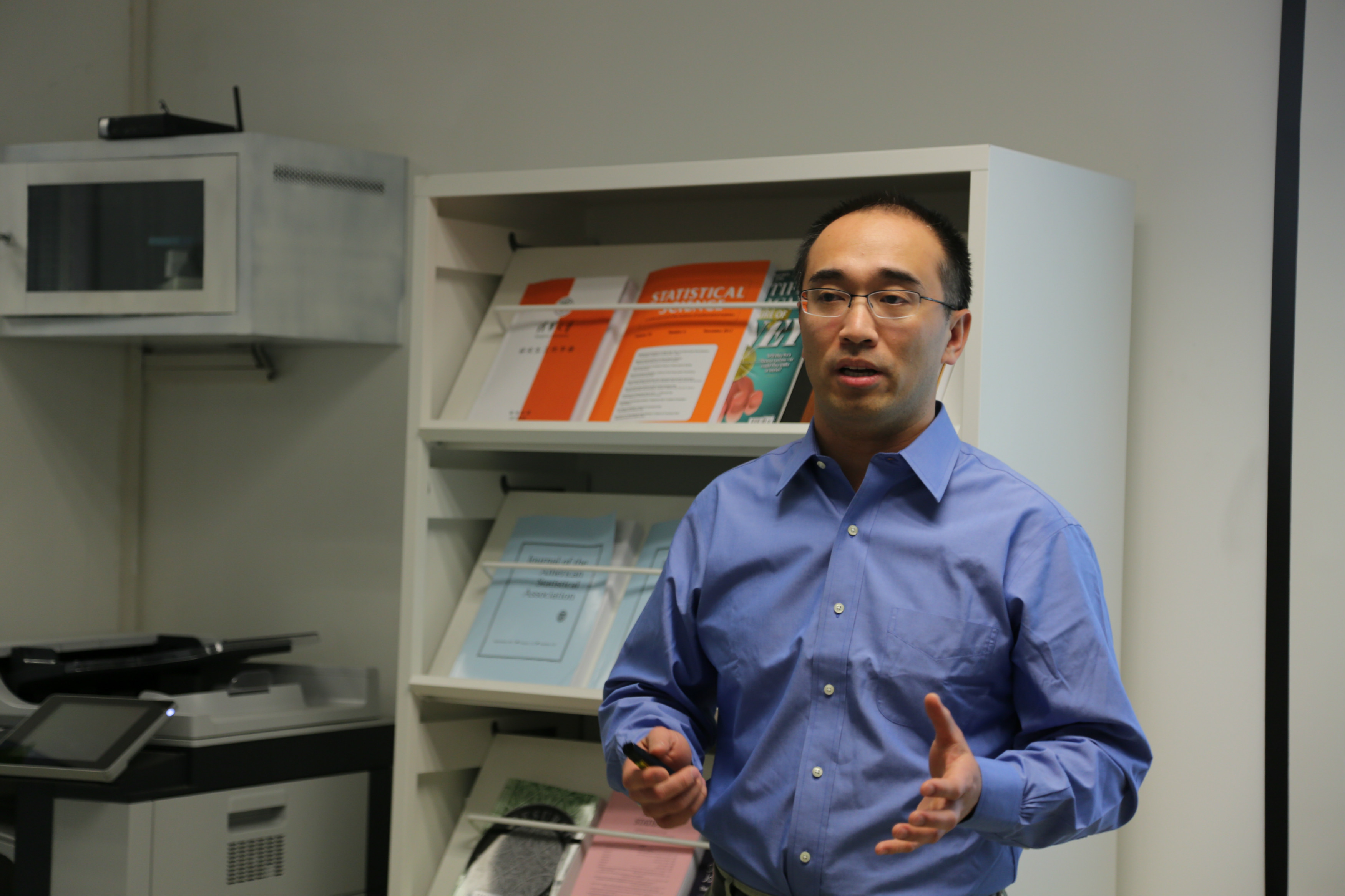 On April 23th, 2018, Prof. Rong Liu from University of Toledo visits the center and gives a talk titled: Empirical likelihood inference for generalized additive model。